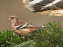 1〜2月個体と比べて換羽が進んでいるようで、換羽なったばかりと思える大雨覆と三列の白斑が綺麗ですし、目先や下面の赤味も増しています。 |
