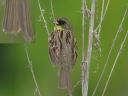 2月の夏羽、もう1枚です。そして一般的なアオジ♂の背はほぼ無班の褐色に見えるのですが、淡色羽縁が鱗模様的に見える個体です。 |