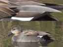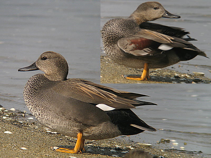 | シロートの一言。 ♂エクリプス→繁殖羽換羽中(中期)とすべきなのかなと??? 図鑑にあるエクリプス写真(7月・8月の飼育個体)の三列は確かに繁殖羽三列と同じように見えるのですが、この個体のように栗色褐色の雨覆を持つ第1回冬羽がいるとは思えずで、野生下のエクリプスでも本当に繁殖羽と同じタイプの三列を持っているのだろうかと強く疑っています。このあとはエクリの三列から繁殖羽の三列へ換羽して成鳥繁殖羽になるのではと想像です。 |