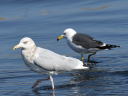 上同日同場所、アメリカセグロを挟んでユリカモメとセグロカモメの第2回冬羽です。