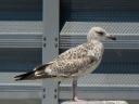 褐色の初列が目風切立っていて、当初はオオセグロとの交雑を疑っていた個体です。しかし4月のオオセグロ幼羽初列は褐色ではなく、もっと白くなっています。夏羽換羽は遅れているだけの初列が摩耗褪色しているセグロ(ベガ)なのかなと判断を改めました。 |