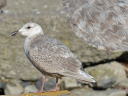 直上直下に対して、摩耗褪色の影響が大きい個体です。それでもなんとなく灰色味がありますし、この可愛い感じの横顔(特に目の見え方)はワシカモメです。 |