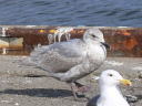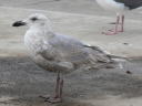 初列羽先に白斑はなく、尾羽後縁に白帯もなくの灰色尾羽ですから、クチバシの変化や肩羽・雨覆の換羽が進みすぎたまだ第2回冬羽なのだろうと判断です。。。 |