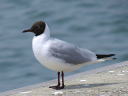 | シロートの一言。 成鳥夏羽です。 ズグロカモメ夏羽の黒い顔は完全な黒ですが、ユリカモメ夏羽の黒は微かに赤味を帯びた黒です。そして申しわけ程度の小さい羽先白斑が擦れ残って見えています。またユリカモメはこの4月半ばで一斉に繁殖地へと飛び立ってしまいますから、夏羽を見る機会自体がかなり少なく、夏羽だけの群れというのはまだ見たことがないです。 |