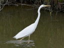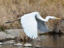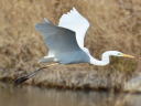 飛翔写真ダウンストロークです。 脚は黒ずんだ だけしか写っていませんから、もしにこの写真1枚だけだと亜種チュウダイサギとの識別ができませんが、連写中の下写真に淡色の脚上部も写っています。基亜種ダイサギです。 |