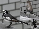 大雨覆と三列の間にできる△部分には、白色羽縁がついた暗色初列が写っていますが、♂成鳥の場合この△部分に写る初列風切は全て純白です。 |