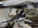 胸の黒班は腮まで届いてはいませんが過眼線は細く、亜種タイワンの血が混じっているのではと疑える個体です。ただし初列に白い羽縁もありますし、この程度ならばまだ亜種ハクセキ範疇♂第1回夏羽でいいのではと。。。 |