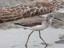 旧羽(幼羽)羽縁に△白斑が目立っている換羽中個体です。この当時はアオアシの幼羽は全て真っ直ぐで細い白条だけだと思っていたものですからわけわからずで、交雑個体も疑いながら番外としていた個体です。。。(^^; |