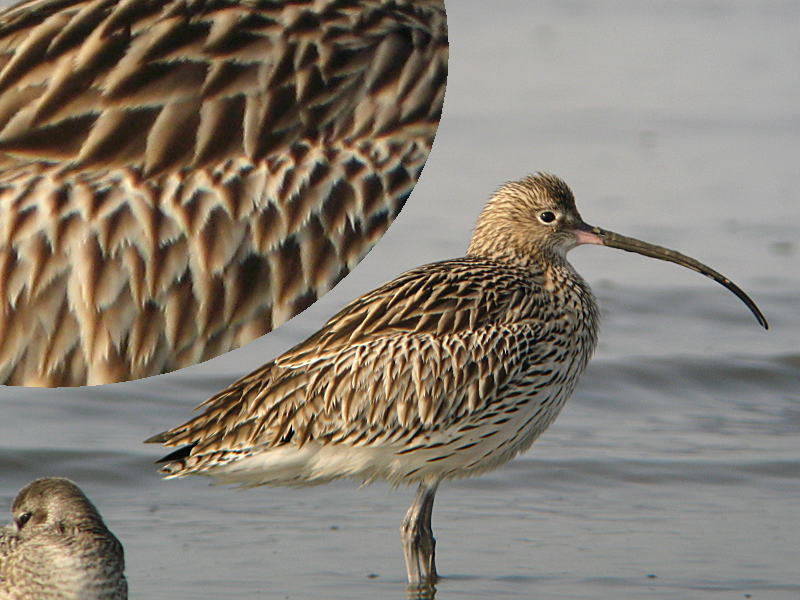 | シロートの一言。 擦れた幼羽ではと??? 1月で傷んだ雨覆が見えてますから第1回冬羽ではとしていた個体ですが、肩羽もかなり傷んでいます。ダイシャク(チュウシャクもですが)に生まれ年秋の第1回冬羽換羽はなく、生まれ年翌春から最初の換羽が始まっているのではと想像しています。ただし幼羽のままだとしても三列は傷みすぎていて、かつ羽縁は△班でもないみたいで、単純に擦れた成鳥なのだろうかとも疑っています。となると成鳥まで秋の全体換羽をしていないことになってしまいますので、やっぱり前年生まれの若鳥で、幼羽三列イコールで羽縁△班とは限らないのかなとわけわからなくなってきました。。。どつぼに嵌まったような。。。(^^; |