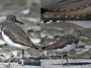 | シロートの一言。 成鳥夏羽→成鳥冬羽移行中です。 静止写真だけだと普通に成鳥冬羽のように見えてしまうのですが、風切羽が換羽中です。そしてP9と10の旧羽羽先が尖っていて幼羽(つまり第2回冬羽移行中)かとも思ったものですが、雨覆には羽縁白斑も写っていてこの写真だけではもう換羽なっているようにも思えてしまいます。成鳥判断で大丈夫なはずです。 |