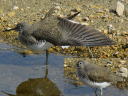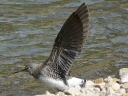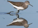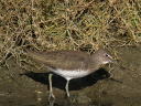 昔、クサシギの年齢識別ではこの個体のような羽縁「---」が冬羽で、羽縁「・・・」が幼羽だと教わった覚えがあるのですが、実際はどちらのタイプも冬羽で大丈夫です。 |