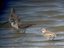 擦れた夏羽から冬羽移行中同士の、ミユビとトウネンです。 |