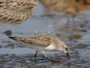 換羽なった新羽がわかり難い個体です。フィールドでは成鳥かもと思ったのですが、写真になってみると旧羽に傷みがなく、原寸大で見ていた肩羽に数枚、やや擦れた幼羽に混じって羽軸だけの新羽が出ていました。