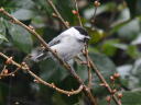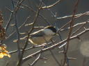 | シロートの一言。 TOPと同一個体、成鳥です。 たまたまの角度か光線の具合か、ハシブトガラみたいに上下クチバシ会合部に淡色のラインが入ってしまいました。しかし基本的に、コガラの上下クチバシ会合部は目立つことはないです。そして色遣い自体は年中同色ですが外見は僅かに夏冬変化があって、夏羽時のほうが腮から喉元にかけての黒色部分が広く、冬羽時は狭くなるそうです。。。が、第1回冬羽も混じるでしょうし、普段見慣れていない九州人としては識別はできないのです。。。(^^; |