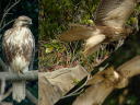 | シロートの一言。 幼羽→第1回冬羽移行中なのではと。。。 一見擦れた幼羽ですが、傷んだ肩羽に混じってやや暗色味が強い新しそうな肩羽もあるように見えます。以下図鑑にはなくシロートの推察ですが、遅れて始まっている第1回冬羽とするよりも、ノスリに生まれ年秋の第1回冬羽換羽はないか殆ど目立たずで、生まれ年翌春から肩羽などの第1回夏羽換羽が始まるとするのが正しいのではと。。。 |