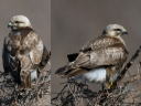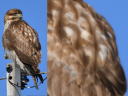 見つけた瞬間はケアシかなと思ったずいぶん白っぽい個体です。肩羽の様子はわかりませんが、黄色の虹彩と羽先が尖った雨覆が写っています。 |