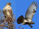 直上に似たような見上げの静止写真と飛び出し写真ですが虹彩は黄色く、何の問題もなく前年生まれの幼鳥です。。。(^^; |