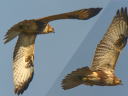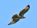 飛翔写真下面です。黄色の虹彩で翼後縁も淡色ですから幼鳥なのですが、10月上旬にもかかわらず下面下地は白く、かなり早めに孵化していた個体なのかもです? |