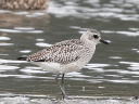 肩羽や雨覆羽縁にティアドロップ型の白斑が目立ち、近似種ムナグロの幼鳥にも似ますがややずんぐりとして見えます。そして全体に淡色傾向で、ムナグロ程の黄色味はないのが普通です。且つ、大きさも二回り程度は大きいです。