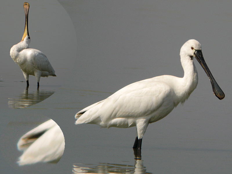| シロートの一言。 第3回冬羽だろうかと? 真っ黒クチバシですがその表面に洗濯板状になる修復痕がなく、第2回冬ではと思ってはみたのですが、同世代とするには前年秋の第2回冬羽との変化(特にクチバシ裏側)が大きすぎるのではと。。。そのため3年目冬としてはいますが、もし最大限変化した春の第2回冬羽であればヘラサギは4年目で成鳥で、このまま第3回冬羽判断で合っていれば5年目で成鳥になるはず。しかし年代別の特徴などが記された図鑑等はなく、それが販売されたあとで間違えていたとわかれば修正します。現在はこれ以上わからないのです。。。(^^; |