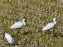 左奥から、チュウダイサギ・ヘラサギ・クロツラヘラサギ・アオサギです。 |