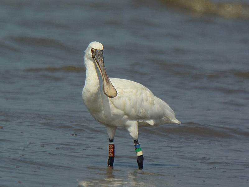 「S64」はこの撮影前年 6月30日韓国の繁殖地でヒナのうちにつけられた脚輪だそうで、ずいぶん年季が入ったクチバシに見えますが、第1回夏羽までの間にはクチバシ表皮の修復はなされないという証拠個体にはなります。