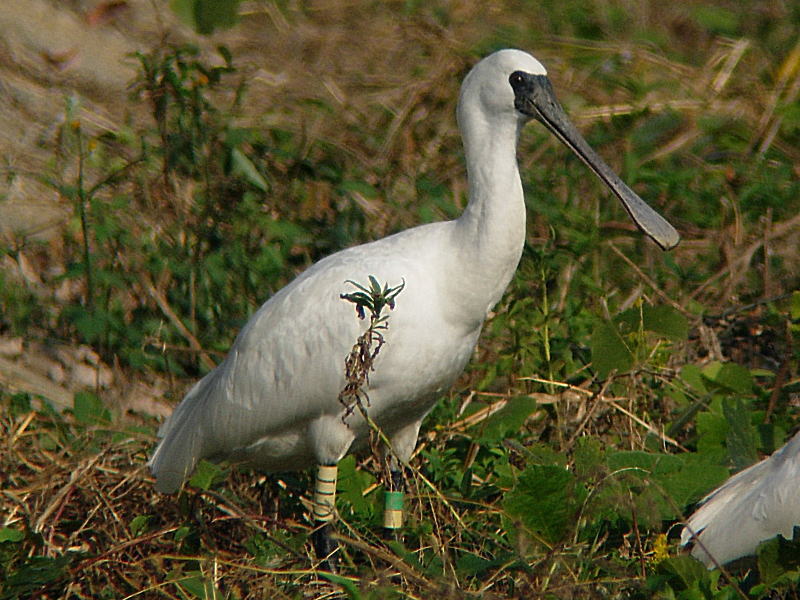 「E92」は2012年7月2日、韓国仁川で幼鳥につけられたものだそうです。生まれ年翌々春個体ですから第2回冬羽で、この時期まで幼羽が綺麗なまま残るわけもなく、第2回冬羽換羽では幼羽同様の黒班付き新羽に換羽なっているのだろうと想像できます。 |