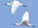 手前の翼を上げた個体は文句なく成鳥ですが、後ろと左側見切れ個体は白い冠羽と胸元のままで、4年目夏なのだろうと判断です。 |